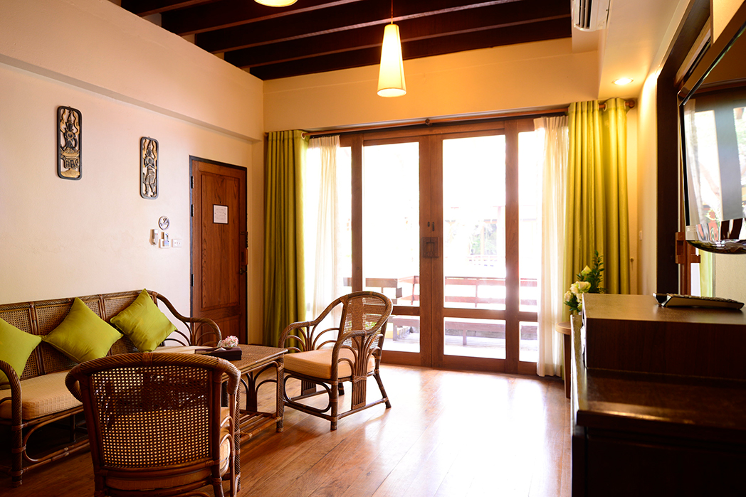 Duplex Suit have 2 bed rooms one master bed room with a separate living room and second room is under the roof for kids or teenage bed room. With a natural bath tub and private balcony, this room is a great place for the whole family to get together for a favorite evening drink.